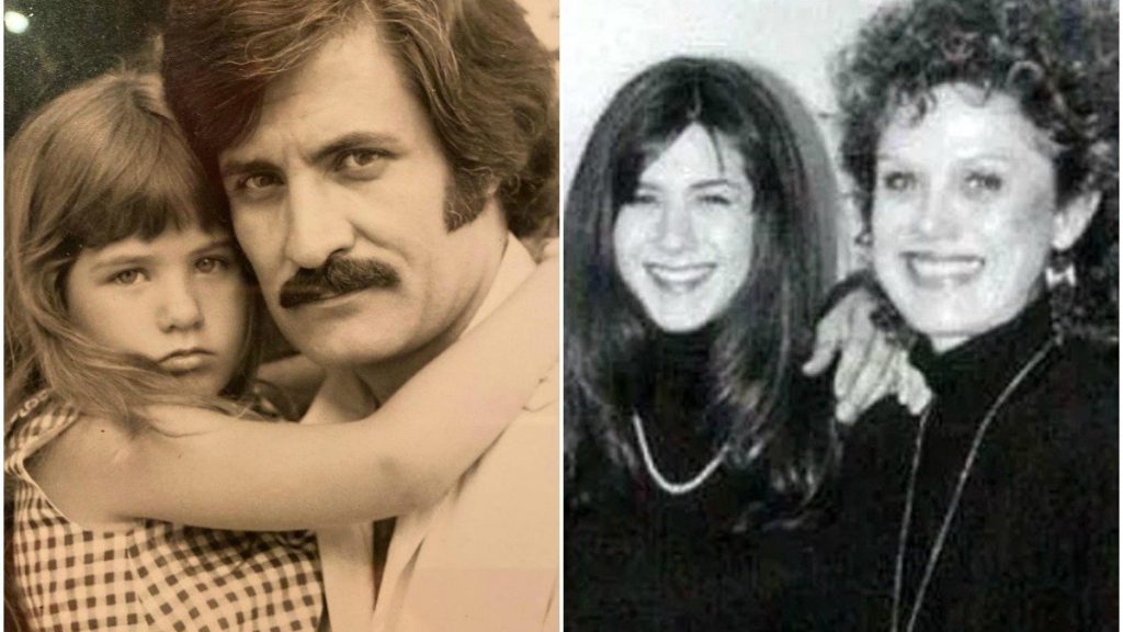 Jennifer Aniston is the daughter of an Greek actor, John Aniston (his real name Anastassakis) and Nancy Dow, actress original Scottish and Italian. She has two half-brothers, John Melick and Alex Aniston. Her godfather is actor Telly Savalas, a close friend of her father. She lived in Greece for a year. Shortly after, she moved to New York. Her parents divorced when she was 9 years old 4 .